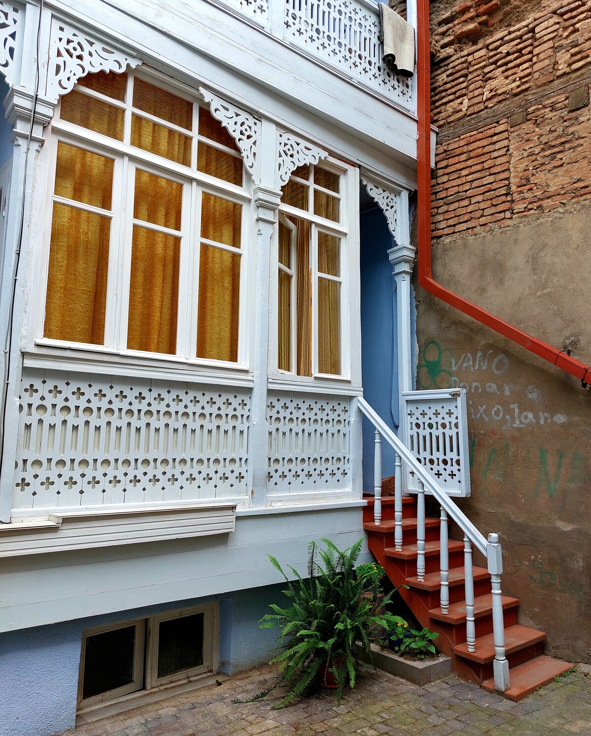 Esta vivienda se encuentra en una casa que es un monumento arquitectónico. La casa fue restaurada hace un par de años y su arquitectura conserva todo el sabor de los antiguos patios de Tiflis. Estos son apartamentos separados en la planta baja con vistas a un patio tranquilo. La propiedad tiene su propia entrada, minicocina independiente, baño privado y un maravilloso balcón. La calle Arutin Sayatnova es céntrica, a poca distancia a pie: plaza de la Libertad, Narikala, parque Rike, calle Kote Akhazi, baños de azufre.