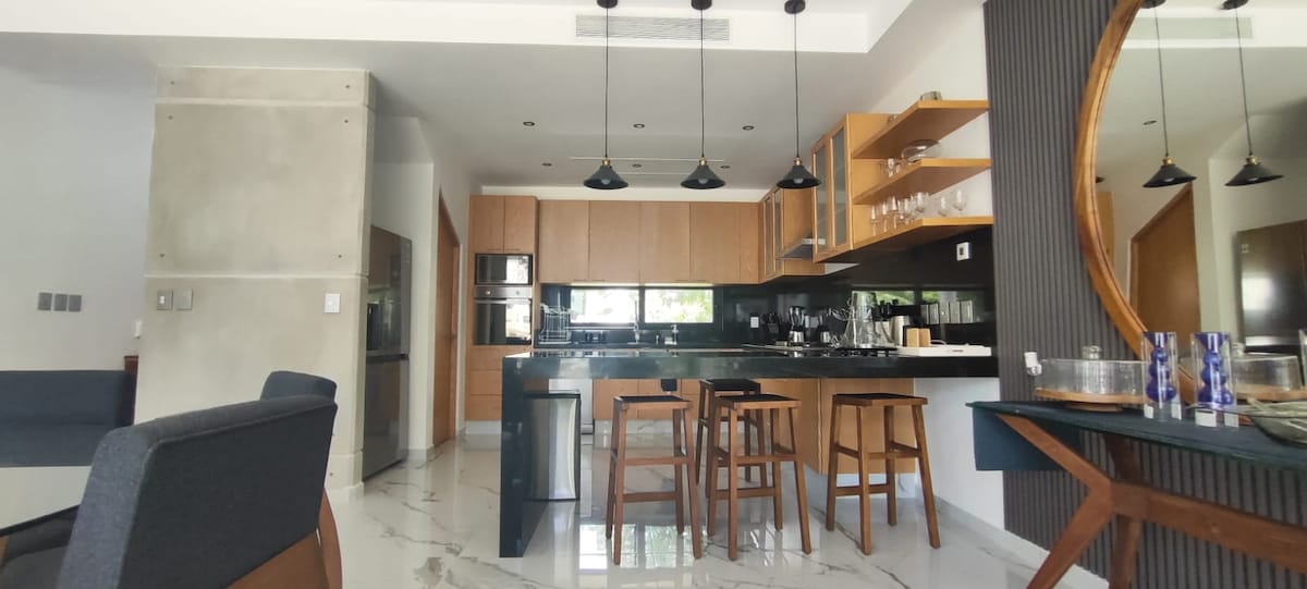Vive la experiencia de hospedarte en una casa frente al Mar Caribe. Con amplia piscina con calefacción y salida directa a la playa donde en temporadas de tortugas (mayo a octubre) las observaras hacer sus nidos, justo ahí en el patio. Desde la cocina, su balcón como sus tres recámaras te deleitarán con la salida del sol y de la Luna. La gran azotea brinda vistas ilimitadas del mar al oriente y occidente y una espectacular puesta del sol. En esta casa tendrás recuerdos que durarán toda la vida.