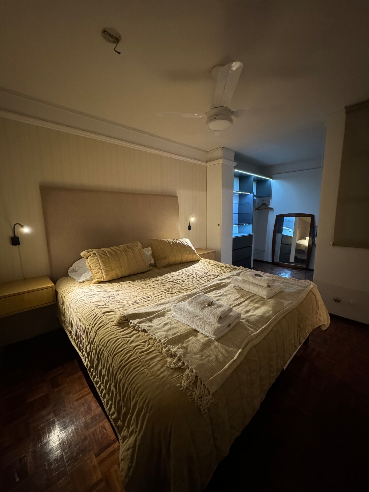 Disfruta de este moderno departamento con gran balcón y vistas que te enamorarán (Sillones y juego de comedor exterior). Dos dormitorios con 2 baños completos. Cocina completamente equipada (lavarropas y lavavajillas). Relájate en un gran sofá para disfrutar de una pelicula. Comedor ideal para compartir momentos. Te recibimos con una canasta de bienvenida de cortesía y ofrecemos gaseosas, champagne y vinos seleccionados (con costo adicional). ¡Perfecto para una estancia inolvidable!