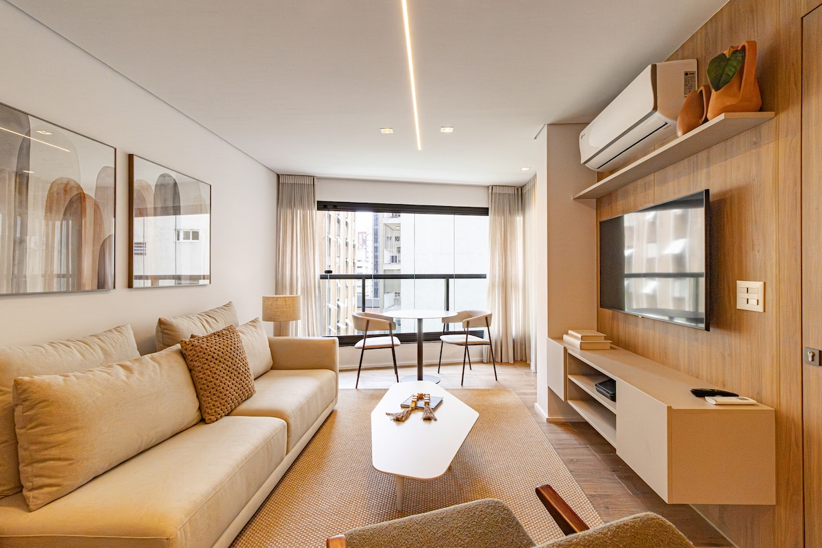Apartamento moderno en el barrio más de moda de São Paulo Hospédate en el corazón de Itaim Bibi, la zona más destacada de São Paulo por sus bares, restaurantes y centros empresariales. A pesar de su ubicación central, disfruta de tranquilidad gracias a las ventanas antirruido. El apartamento ofrece servicio de limpieza diario, WiFi, TV, aire acondicionado, cocina, una plaza de estacionamiento con valet y recepción y seguridad 24/7. ¡Perfecto tanto para viajes de negocios como de ocio!