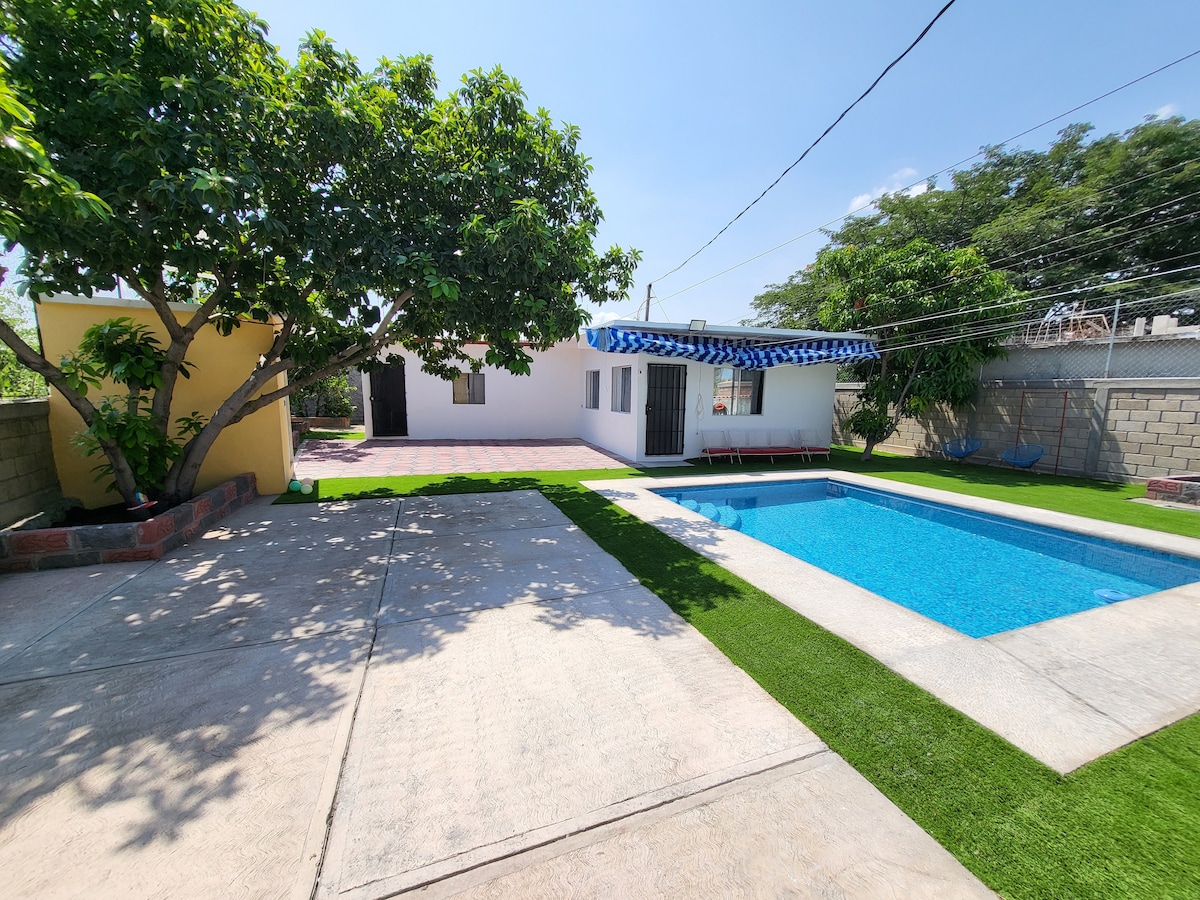 Excelente casa con alberca, hasta para 7 personas. Completamente equipada para tener una experiencia única. A 10 minutos de Jardines de México y del lago de Tequesquitengo. Ideal para que asistas a los eventos, pasear en yate, volar en ala delta, lánzarte en paracaídas, visitar balnearios y mucho más. Más de 1,000 m2 de jardines para disfrutar tu estancia en el mejor clima del sur de Morelos. 3 recámaras, 2 baños, muebles para jardín, asador, aire acondicionado en toda la casa.