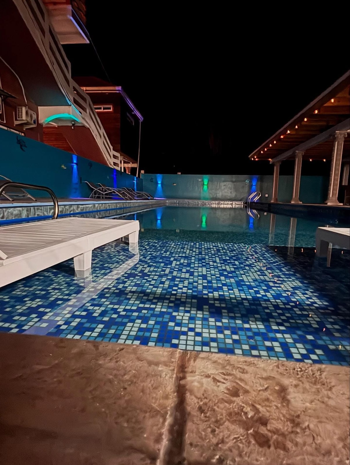 Experience the best of El Triunfo de la Cruz at FaithVille, a modern hotel complex designed for groups, families, and solo travelers alike. Our property features a striking two-story building with contemporary rooms and a central courtyard that comes alive at night under a canopy of warm string lights. Whether you’re cooling off in our neon-lit swimming pool or enjoying a meal in the open-air common area, you’ll find the perfect balance of relaxation and social vibes.