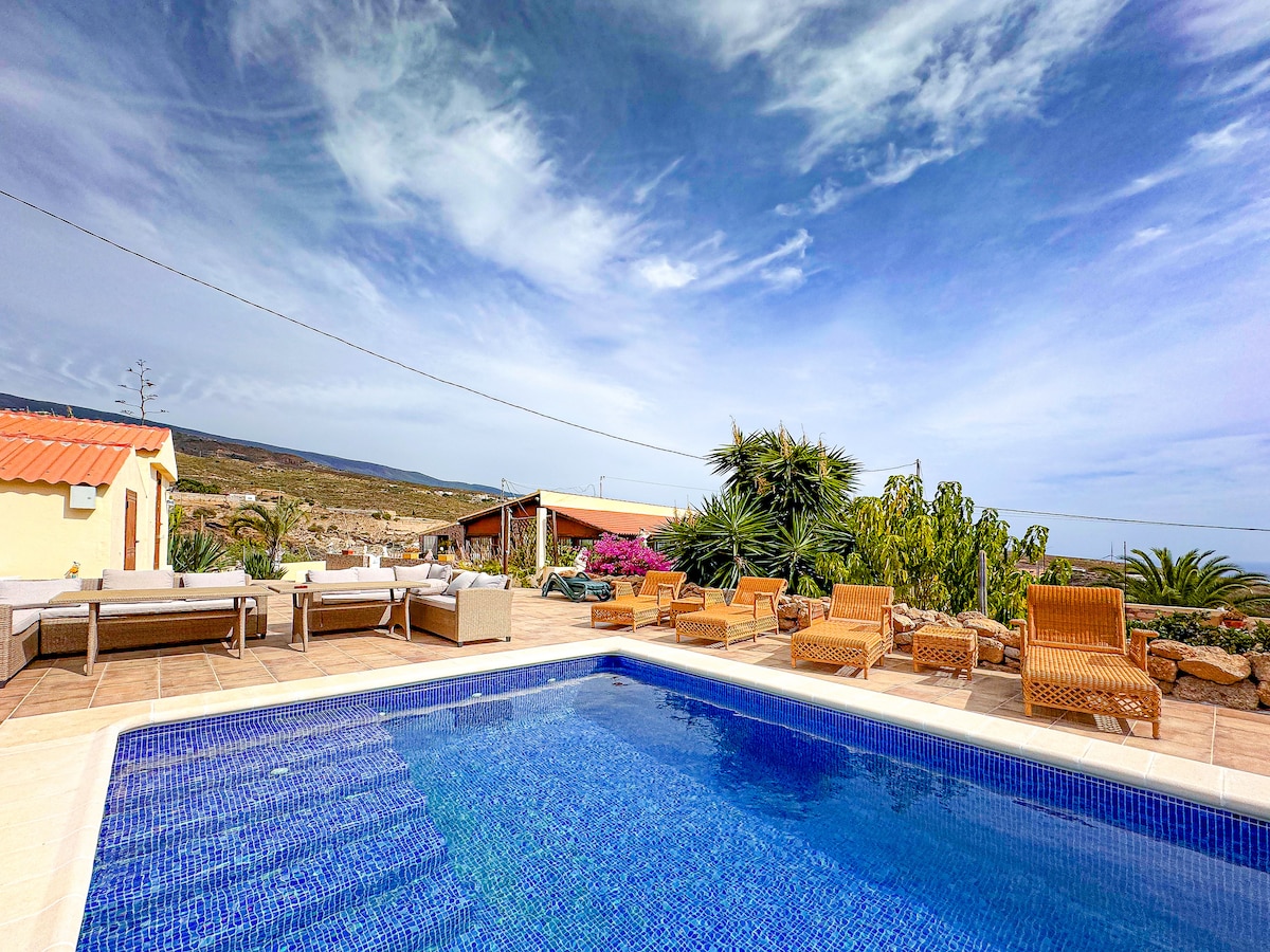 Finca privada: 3 casas, piscina y vistas mar