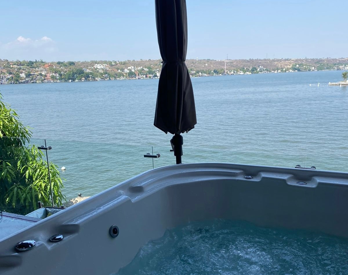 El depa tiene vista al lago en donde disfrutarás de una experiencia única con un jacuzzi privado cocina equipada elevador pantallas sky internet Netflix ingresas con tu cuenta aire acondicionado Cuentas con alberca climatizada en invierno jacuzzi con agua caliente fines de semana baños en la alberca regadera Acceso al lago donde encontraras lanchas motos donas A 5 minutos de jardines de México 10 minutos de sky dive cerca de balnearios haciendas tiendas restaurantes y jardines de evento