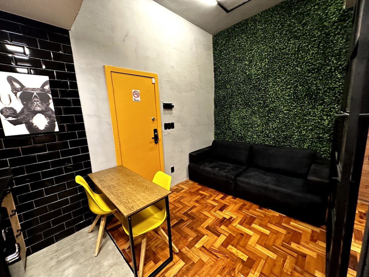 Relájate en este espacio tranquilo, elegante y con estilo. Dormitorio y sala de estar súper elegantes y modernos, estilo industrial de Nueva York, todo renovado por un arquitecto de renombre, en el mejor punto privilegiado de Teresópolis, a pocos pasos de las atracciones turísticas más famosas. Cocina completa con utensilios, ropa de cama, baño y kit de bienvenida con jabón y champú/acondicionador. Condominio con conserje las 24 horas y espacio de garaje. Deja el auto en el garaje y haz todo lo posible a pie
