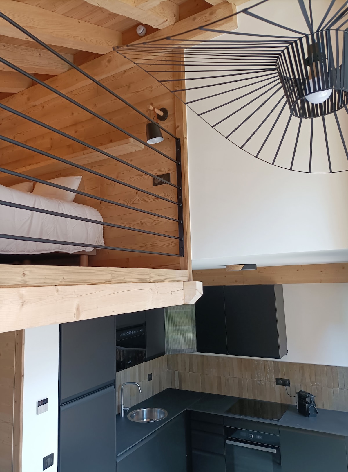 Ce logement affiche un style résolument unique. Logement pour 4 personnes disposant d'un spa avec bain à remous et sauna (partagé avec l'autre logement du chalet avec créneaux privatifs ) d'un espace extérieur avec barbecue et salon de jardin. Le lit queen size est en mezzanine au dessus du salon avec une petite hauteur sous plafond. La chambre dispose de 2 lits superposés. Le centre du village, les commerces, les remontées mécaniques, la piscine accessible en quelques minutes à pieds.