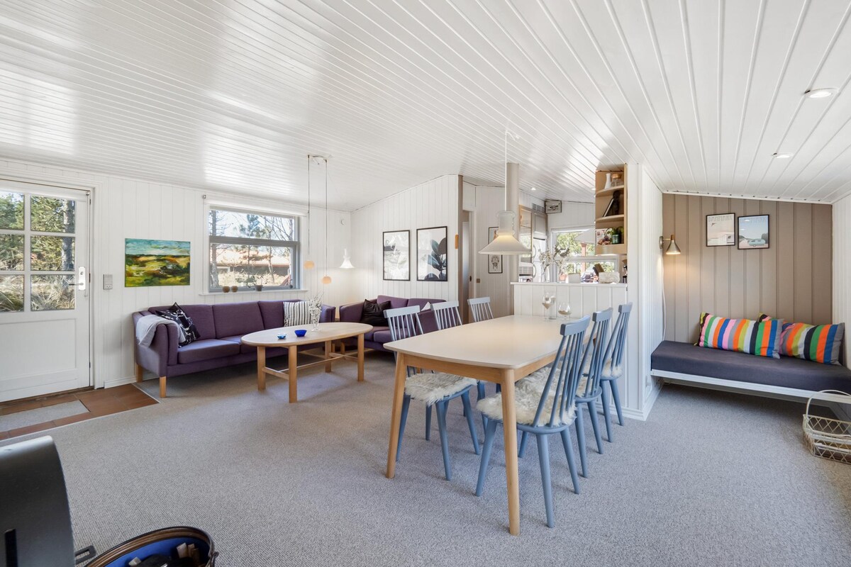 Aquí hay espacio para todos: Bienvenido a Gæslingevej 1, donde se encuentra mi encantadora y pequeña casa en forma de A. La casa de verano tiene un ambiente fantástico y está situada en una hermosa propiedad tranquila y privada cerca de la naturaleza cruda y hermosa de Thy, donde hay una rica vida silvestre. La casa tiene 54 metros cuadrados con capacidad para 5 personas, distribuidos en 2 dormitorios y un altillo con 2 colchones. Hay un gran salón/sala común agradable y luminoso con estufa de leña La casa de vacaciones se encuentra a unos 4 minutos a pie de las tiendas y el mar está a unos 12 minutos de aquí.