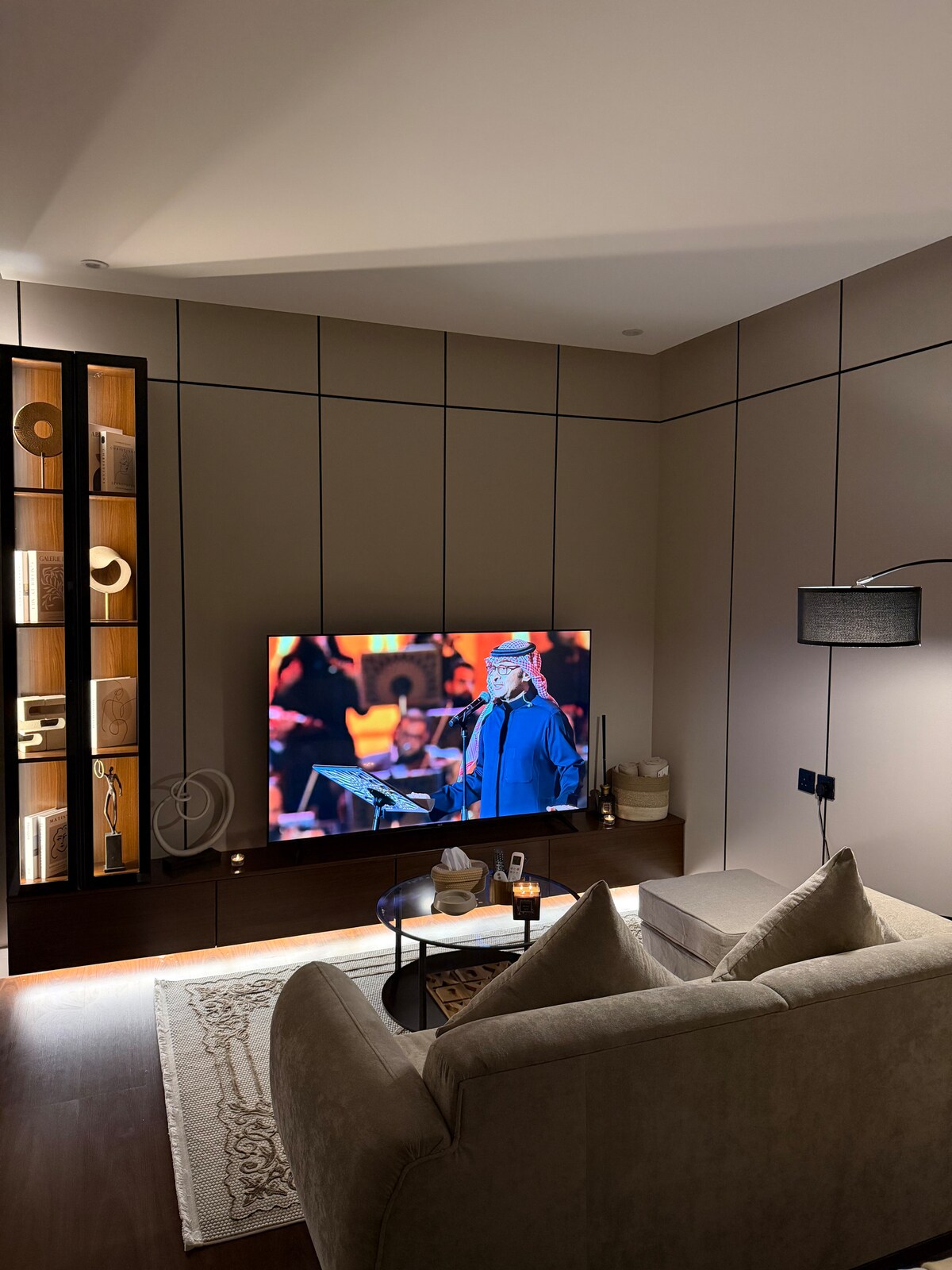 Un apartamento moderno diseñado para una estancia excepcional, situado en uno de los mejores barrios de Riad con unas vistas impresionantes de KAFD. Cuenta con una zona de estar al aire libre con pantalla y proyector para disfrutar de las noches. Para tu comodidad, la cama incluye una capa adicional de 14 cm de alta calidad. «También ofrecemos servicios de coordinación de eventos para ocasiones especiales (incluyendo pasteles y accesorios) por una tarifa adicional con reserva previa, lo que garantiza una experiencia inolvidable»