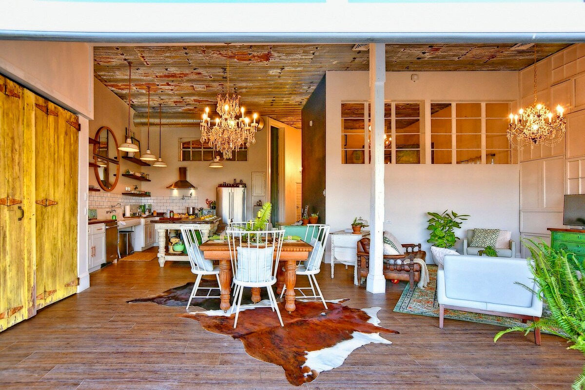 Welcome to the LOFT - A private, eclectically designed spa-inspired unique stay in the historic Webb Schoolhouse, less than an hour from Toronto. Featured in TORONTO LIFE, this private loft includes a sauna, unique hanging bed, wood stove, kitchenette and is filled with art, and huge tropical plants as well as a projector & giant screen for epic movie nights. Relax and recharge, roam the grounds and enjoy the beautiful outdoor spaces, the permaculture farm, animals, and fire pit.