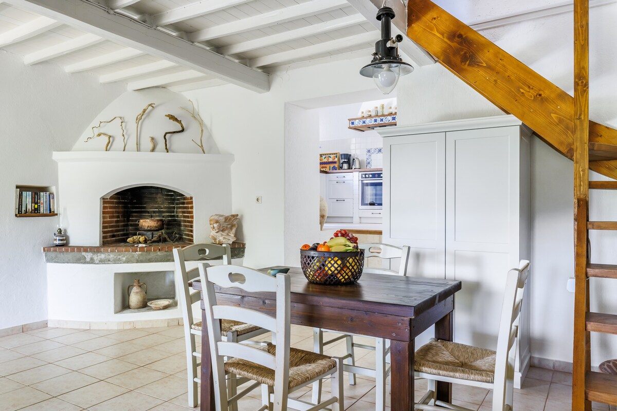 Casa de campo tranquila con patio y vistas al mar Egeo.