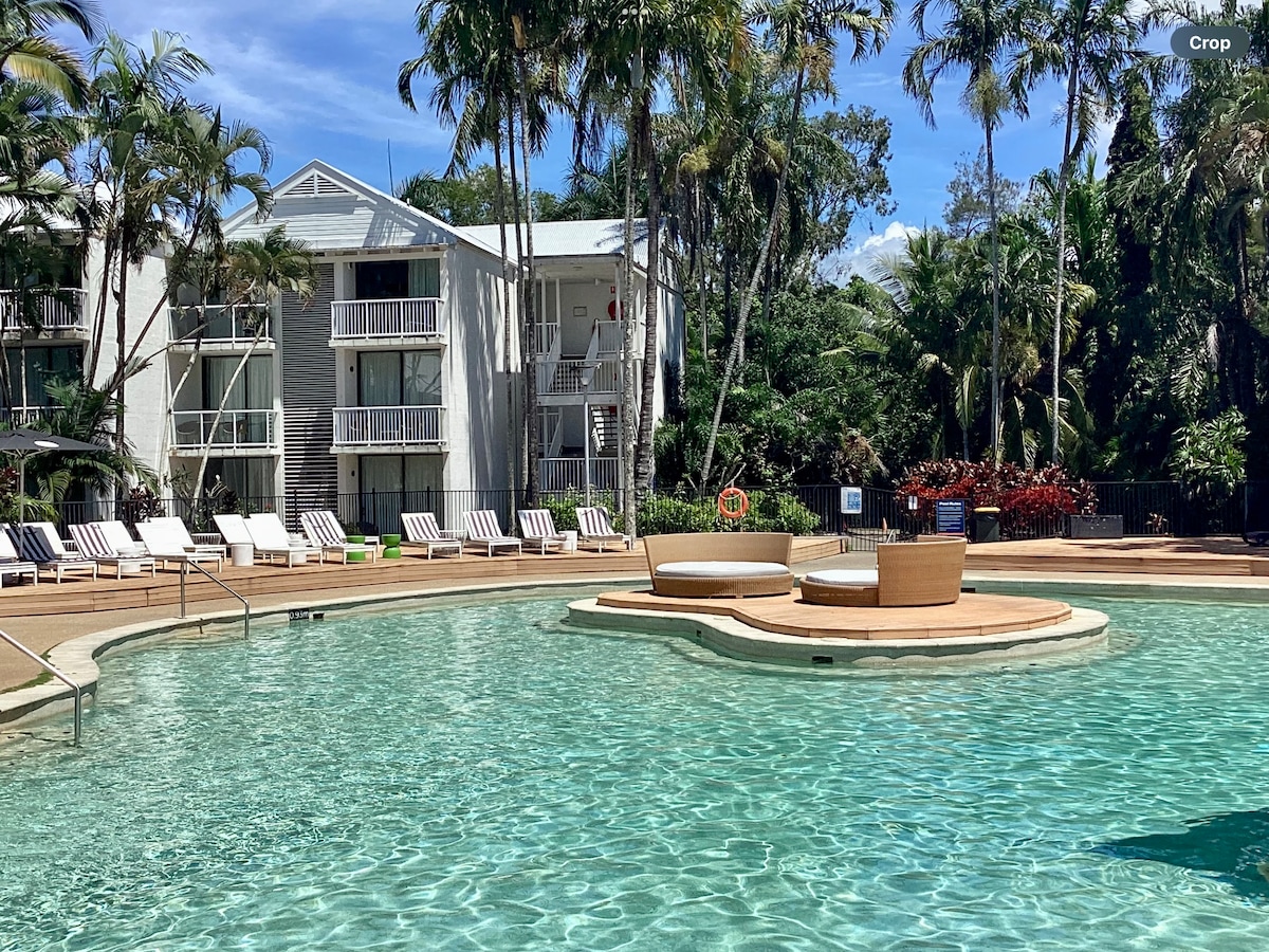 «RELÁJATE EN EL SWIMOUT» Te damos la bienvenida al mejor SWIMOUT DE LUJO PARA FAMILIAS. El apartamento 169 se encuentra en el lado tranquilo de la playa del complejo. El apartamento de gestión privada ofrece un gran patio con acceso directo a la piscina y un camino privado desde el patio hasta los pasillos principales, el bar de la piscina y la playa. El apartamento es de gestión privada por CHRIS y se encuentra dentro de un complejo en 22-36 Mitre St. Port Douglas. Todas las instalaciones del complejo están disponibles para que todos los huéspedes las utilicen.
