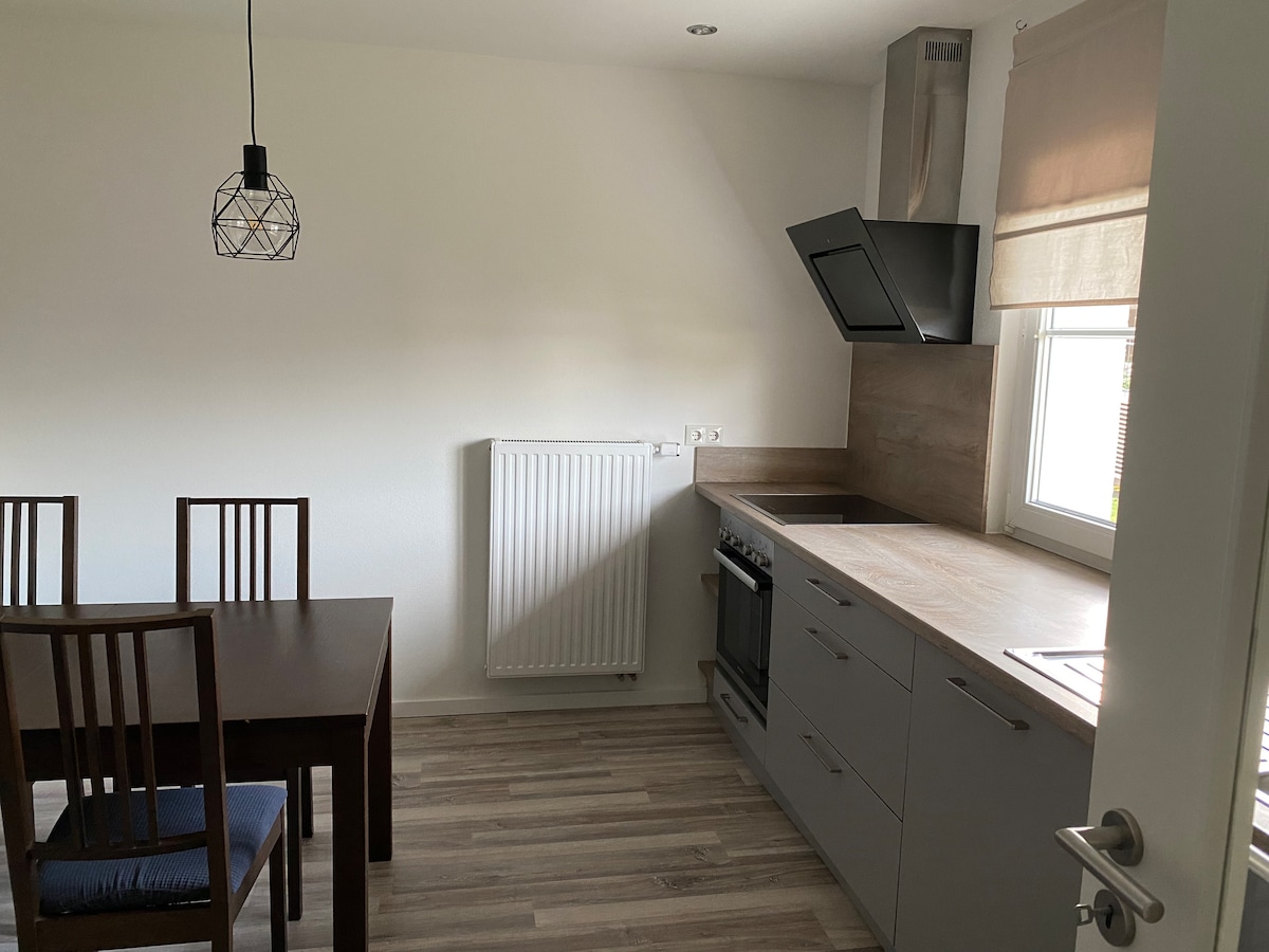 Dormir y soñar. Alojamiento con vistas al jardín. Tranquilo y lejos del ajetreo y el bullicio, el apartamento, decorado con mucho cariño, ofrece espacio para 2 personas. El apartamento consta de sala de estar con cocina, baño con inodoro y un dormitorio separado. Si lo desea, puede dormir por separado / galería para dormir (dormitorio 2), al que se accede a través de una escalera de madera. El apartamento de 42 metros cuadrados está equipado con calefacción por suelo radiante. La terraza y el jardín contiguos invitan a relajarse.
