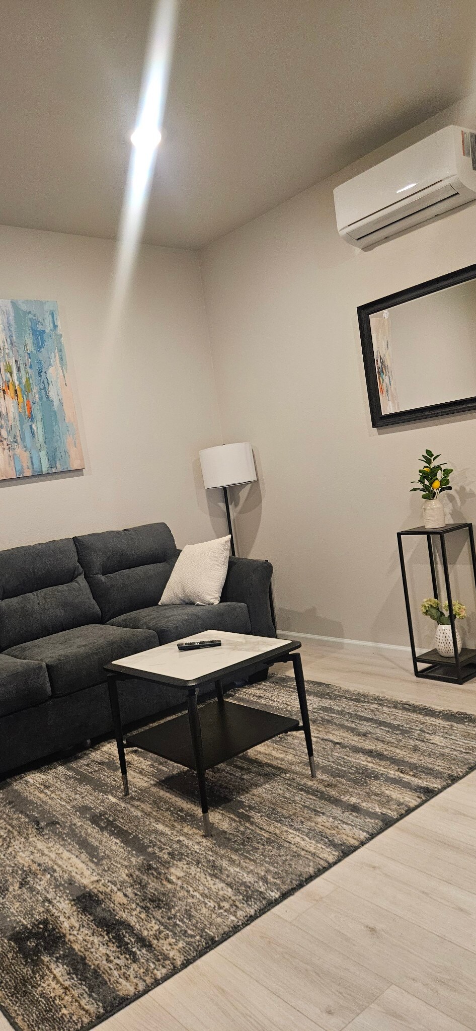 Escápate a nuestra serena morada con una lujosa cama tamaño king y servicios cuidados para una comodidad a largo plazo, incluida una aspiradora. Relájate con un televisor Roku de 50pies, que ofrece transmisión gratuita de una vasta biblioteca de películas/programas de televisión bajo petición. La cocina pequeña está equipada con una estufa eléctrica y una combinación de freidora/horno de aire, perfecta para comidas caseras. Nuestra suite todo incluido ofrece asistencia las 24 horas, los 7 días de la semana, lo que garantiza una estadía perfecta. Experimenta el encanto de nuestro apartamento privado, diseñado pensando en tu máxima relajación.
