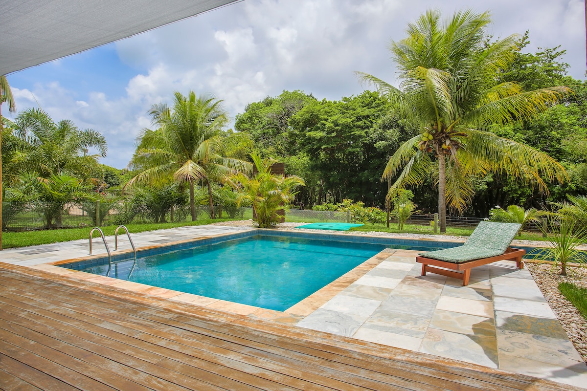 Chalet en Praia de Pipa con piscina privada, todo con aire acondicionado, 2 suites dobles, TV con acceso a streams, cocina gourmet completa integrada en la zona de la piscina, wifi y garaje para hasta 2 coches Baños con secador de pelo y artículos de baño. Tenemos agua mineral. Ideal: familia que quiere privacidad y tranquilidad. Aproximadamente a 15 minutos a pie (700 m) de Praia do Amor, Chapadão y el centro de la ciudad. A 3 minutos a pie del supermercado, panadería, farmacia, nevera, bares, restaurantes y lavandería para ropa.