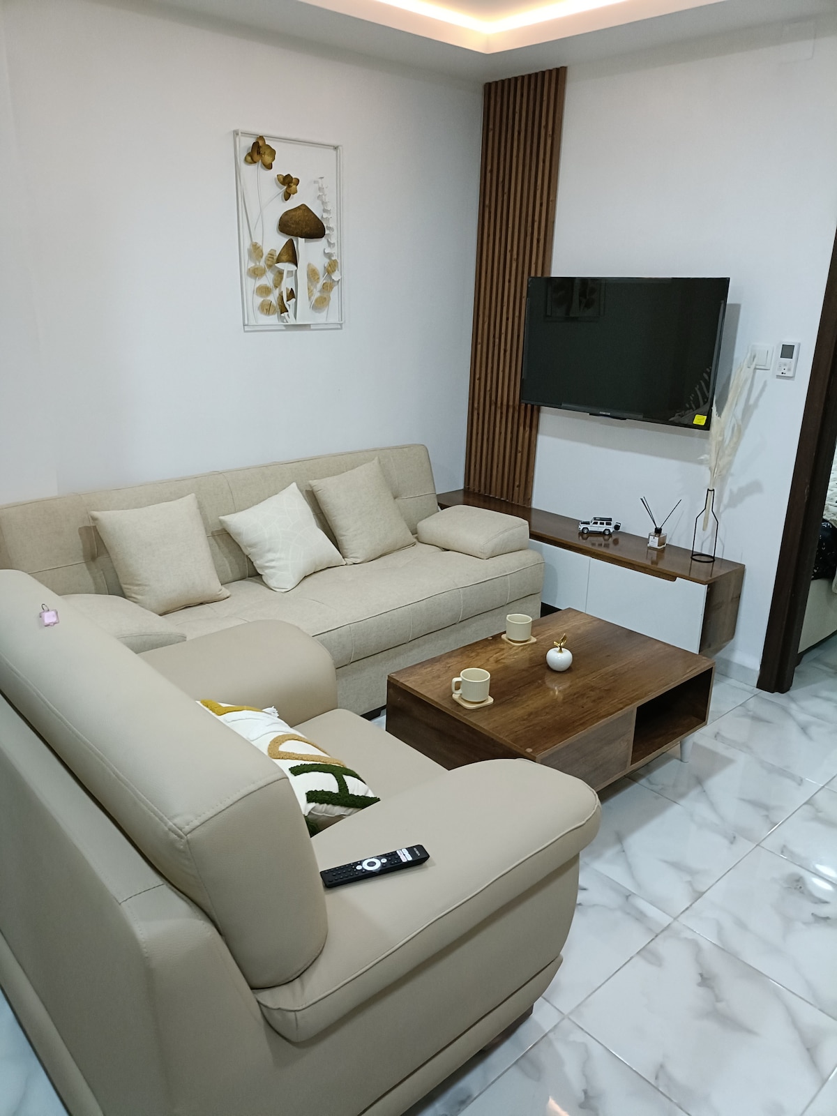 L’appartement Situé à moins de 5mn de l’aéroport de Béjaïa est au 4ème étage, il offre un cadre paisible avec une très belle vue Vous pourrez même apercevoir les avions décoller ou atterrir, sans en entendre le bruit, garantissant ainsi un séjour paisible L’appartement comprend: •Deux lits individuels •Un grand lit king-size •Un lit bébé disponible sur demande Une machine à café avec plusieurs options Une mosquée est à seulement 2mn à pied de l’appart pour ceux qui souhaitent faire la prière