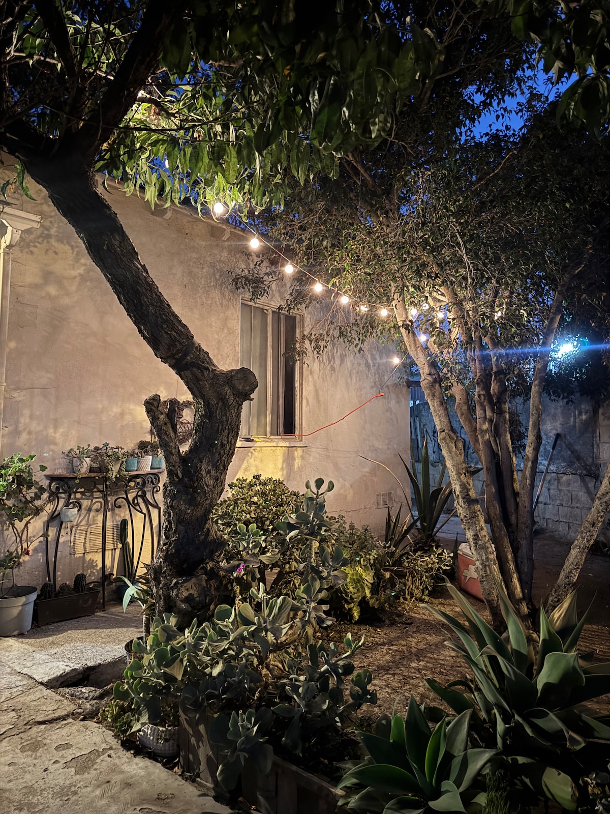 Una experiencia mágica que te tranporta a un ambiente sereno y encantador. La propiedad cuenta con una casa de huéspedes de dos cuartos con una cama king y dos camas queen. Hay dos baños completos y cocina completamente equipada. Aunque forma parte de la casa principal, la propiedad es completamente independiente. También cuenta con jardines y muchas áreas para comer y relajarte. Queda a 10 minutos caminando de la playa y está cerca de mercados, hospitales y cines.