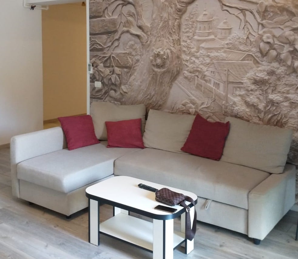 Welcome to our one-of-a-kind studio apartment close to the heart of the city. Our apartment got a grand mirror that not only adds depth to the room but also creates an illusion of boundless space. As you gaze upward, be mesmerized by the enchanting LED lights embedded in the ceiling, casting a gentle glow that sets the perfect ambiance for any occasion. These ceiling LEDs add a touch of sophistication and warmth to your experience. Promising an unforgettable urban retreat.