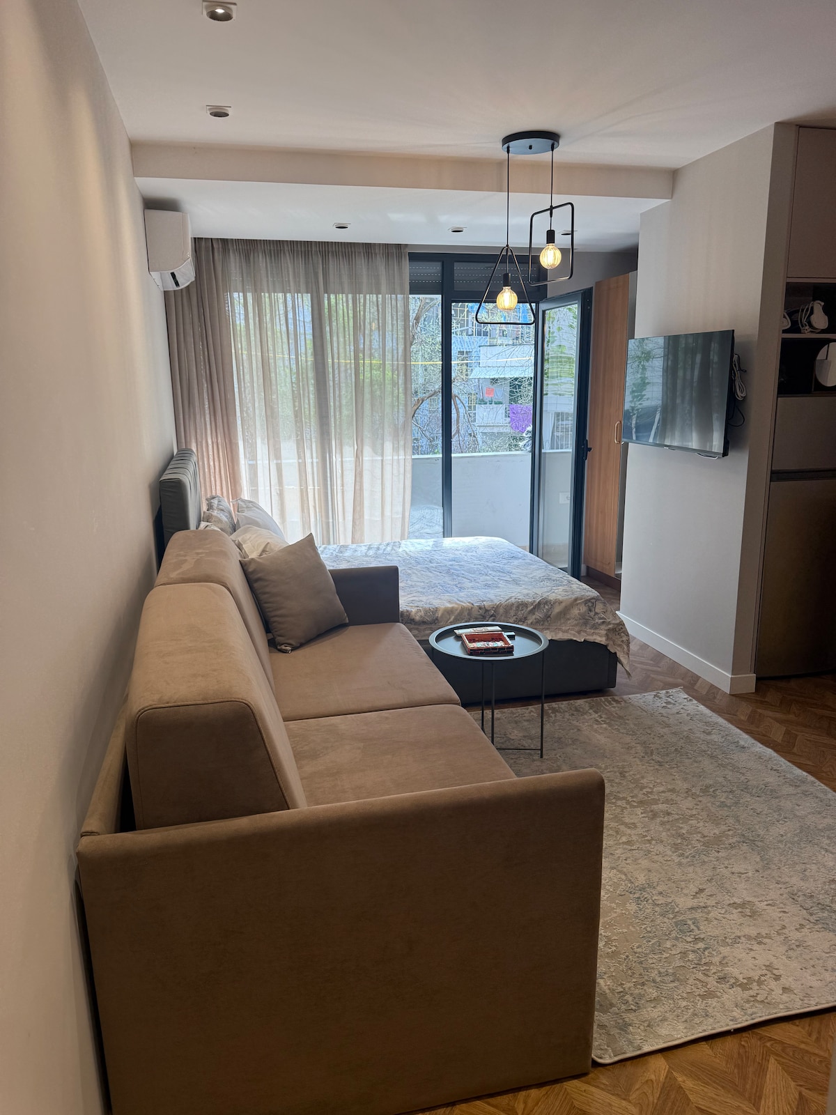 Olive Studio Apartments is a newly renovated and elegantly designed studio that offers a cozy and stylish retreat in Tirana. With a bright interior, comfortable sleeping area, functional kitchenette, and modern amenities, it is ideal for both short and long stays. The welcoming atmosphere ensures relaxation and convenience, while its location near the vibrant "Blloku" district keeps you close to the city’s dining, shopping, and cultural highlights.
