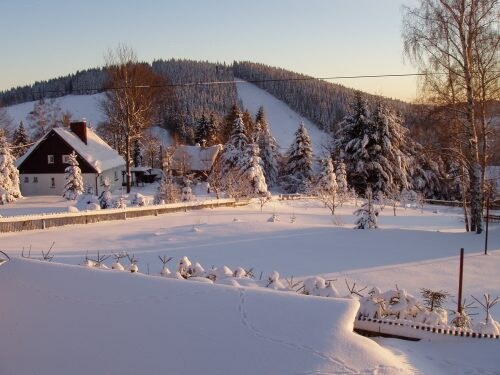 Preciosa casita en una ubicación idílica y tranquila en el borde del bosque en una parcela ajardinada. Magníficas vistas panorámicas al valle sobre Fichtelberg-Neubau. En las inmediaciones del lago Fichtelsee y del nacimiento del río Naab, el punto de partida perfecto para excursiones a pie y en bicicleta de montaña. En invierno, la entrada a la pista de esquí de fondo pasa muy cerca. Gracias a su ubicación a 800 m sobre el nivel del mar, la nieve está garantizada. En caso de nieve, no se puede garantizar el acceso directo a la casa, dependiendo del estado de la carretera, se debe aparcar a 500 m de distancia.
