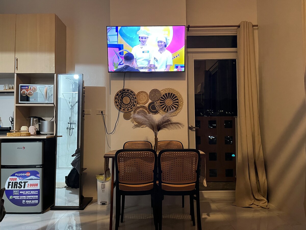 ¡Relájate en este tranquilo y elegante estudio cerca del Aeropuerto Internacional Mactan-Cebu! Inclusiones: - Acceso gratuito a la piscina y al gimnasio - Toallas y artículos de tocador. - Café de cortesía - Secador de pelo - Plancha de ropa. - Ropa de cama adicional (bajo petición) - Wifi. Acerca de nuestro espacio: - Admite mascotas. - 32 m² con balcón frente a la piscina - Cama de matrimonio con 2 enchufes junto a la cama - Escritorio de trabajo - Ducha fría y caliente. - Comedor - Televisión inteligente con Netflix - Roperador - Cocina - Lavadora.