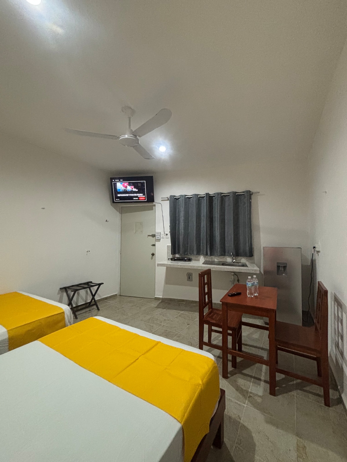 Estarás a dos calles del centro de Tizimin, a unos pasos de farmacias, super y lugares para comer. Al momento de tu reserva se te enviará en número de cuarto y la contraseña de la caja de seguridad de llaves, no tienes que preocuparte por la hora de llegada ya que puedes llegar a la hora que quieras y tus llaves estarán en la caja de seguridad. Los cuartos tienen aire acondicionado, refrigerador, parrilla eléctrica, baño privado, ventilador y tarja. Tenemos descuentos por días, semanas y meses