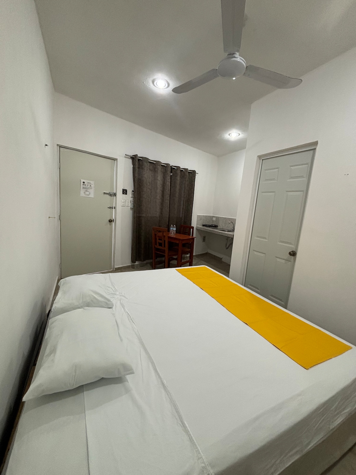 Departamento equipado en el centro de Tizimin, a 7 metros del parque principal y la iglesia de los Reyes magos. Restaurante-bar a unos metros, cafetería enfrente, panadería tradicional cerca, supermercado, etc. El departamento cuenta con 1 baño completo, amenidades, toallas, television, cable, internet, refrigerador, microondas, cafetera, licuadora, parrilla electrica, sartenes, cubiertos, vajilla y vasos. Se ofrecen durante su estancia y si lo requieren dos hamacas.