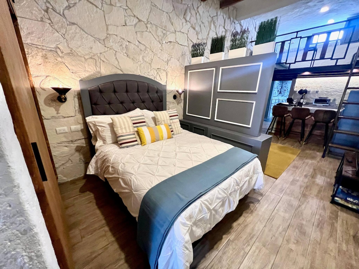 Pensado para tí este Loft te llevará a vivir una experiencia inolvidable con detalles que harán tu estancia cómoda y agradable, justo abriendo la puerta del balcón tienes una hermosa vista que brinda la sensación de naturaleza y privacidad.<br>Nuestra ubicación es en un segundo piso unos pasos del zócalo. <br>Val’Quirico es un lugar para caminar por sus diferentes plazas llenas de música y buen ambiente, sugiero vengas con zapatos cómodos porque es empedrado<br>Ven y disfruta nuestro espacio!