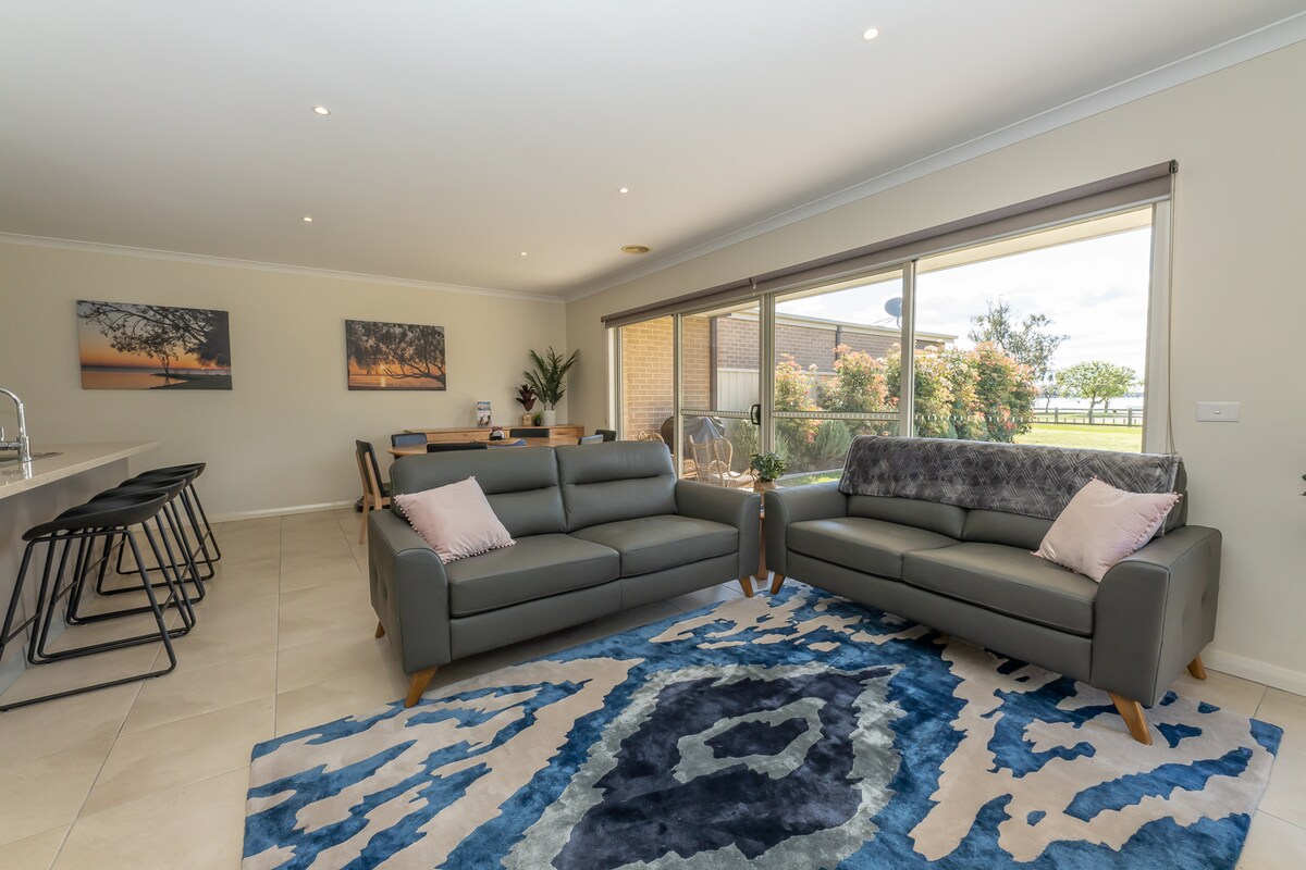 This central Barooga home has many entertaining spaces for groups to enjoy. Enjoy a BBQ on the front porch, or sun bake on the lounges next to the pool. The backyard also features a projector screen for movies and gaming. The combined indoor/outdoor living truly brings the natural beauty of Australia into the home. The Murray River (Quicks Beach) is just a three minute drive, while the golf club, pub, mini golf, virtual video game centre and botanical gardens are just a short walk away.