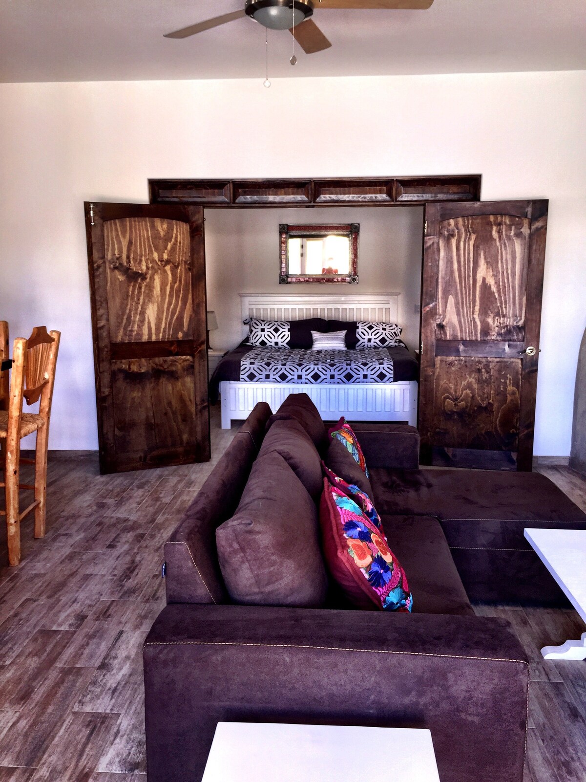 Definitivamente cuando visites Todos Santos, tienes que hospedarte con nosotros Estefani e Irving estaremos muy felices de recibirte. Además que tendrás un departamento hermoso , totalmente equipado con una habitación con cama king zise, su propia terraza saliendo por la habitación , cocina con lo necesario para preparar tus propios alimentos si así lo deseas. A tan solo unos pasos del complejo encontrarás los mejores restaurantes de la zona con buena comida, y una playa de surf a 10 minutos.