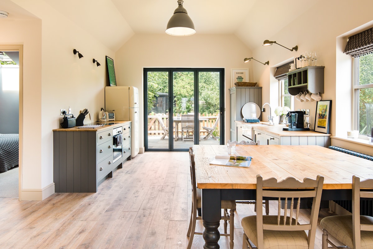 A Unique Garden House in the heart of the Kent Countryside with views across our 3 acre orchard. Included in your stay is your very own private garden, complete with hot tub & summerhouse to relax in. The property also has private parking plus a secret woodland hideaway. Within walking distance is both Sharsted Wood and Doddington Place Gardens which are great for exploring, plus our local pubs - The Black Lion and The Chequers Inn which are perfect for a spot of lunch or a dinner reservation.