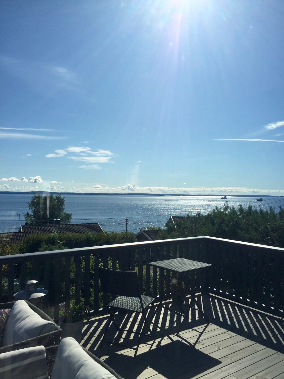 Aquí puedes relajarte con mucho espacio a tu alrededor y vistas de toda la ciudad de Horten. A poca distancia de la playa y el bosque si quieres pasar tiempo al aire libre. Si prefieres sentarte en el salón y ver los barcos en el fiordo de Oslo, esto también es una posibilidad. Mucho espacio en la casa para familias con cama elástica y casa de juegos en el jardín. Estacionamiento para un coche en el garaje.