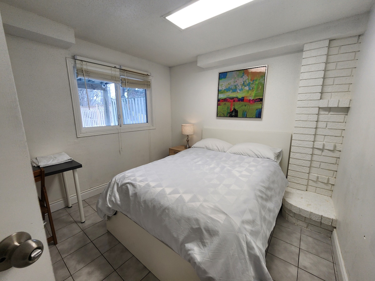 Apartamento sótano super acogedor con 900 pies cuadrados, totalmente renovado el verano pasado. 2 dormitorios y 1 colchón inflable que se puede añadir en la sala de estar, todas las camas son tamaño queen, puede alojar a 6 personas. Vivimos arriba, tendrás una entrada independiente a través de la puerta del garaje. Ofrecemos utensilios de cocina, café, té, microondas, hervidor de agua, etc. Barrio tranquilo, a 2 minutos del centro comercial Markville, Walmart, supermercado chino T&T; muchos restaurantes están cerca. También está cerca de la estación de autobuses, la estación Centennial Go y la autopista 407.