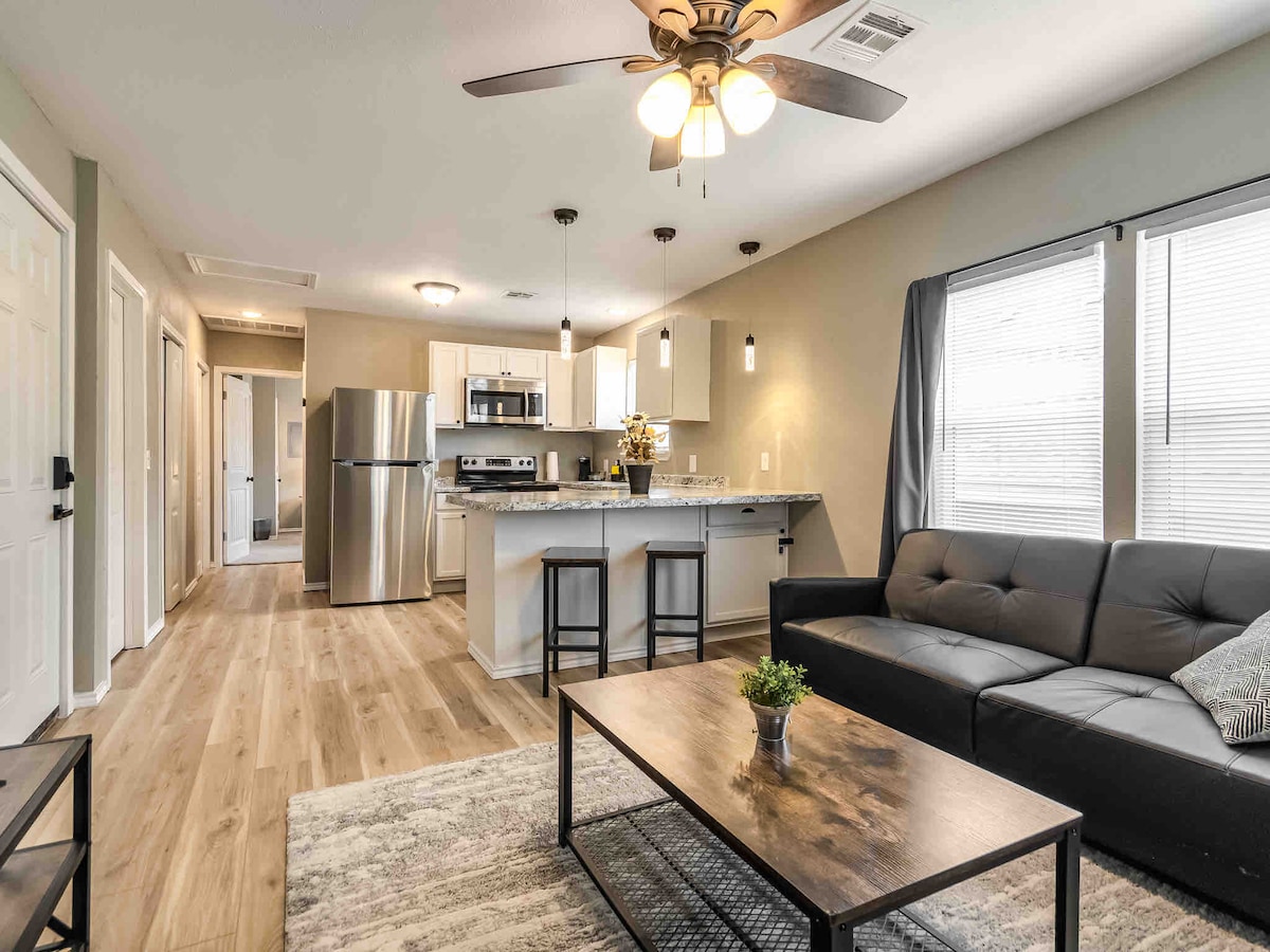 ¡Reserva este apartamento de 1 dormitorio sobre garaje en el distrito Wheeler de Oklahoma City! Esta es una estancia obligada para cualquier persona que busque un lugar limpio y contemporáneo, que esté a solo 15 minutos del aeropuerto. Ubicado a pocos minutos del centro de la ciudad, con una cervecería, una tienda de tacos y la cafetería Clarity a poca distancia a pie. El apartamento cuenta con una entrada privada independiente, capacidad para 2 personas, lavavajillas, cafetera, máquina de hielo, cocina completa equipada con utensilios, TV con Roku y es superlimpio y cómodo.