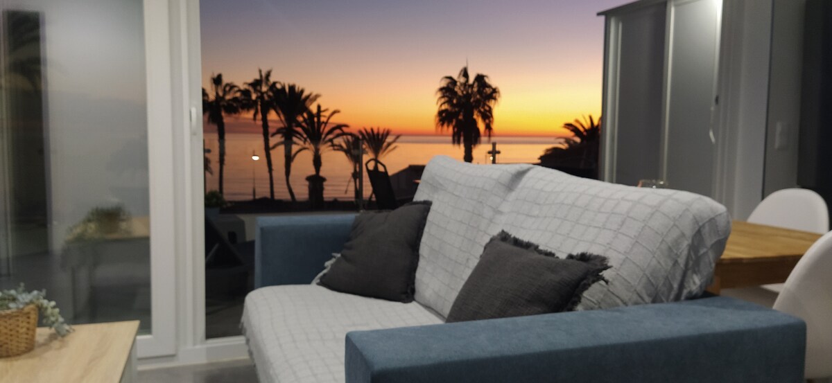 Apartamento en primera línea de playa en el centro de Torrox Costa. Próximo a restaurantes, supermercados, farmacias, parada de bus y taxi. Alojamiento ideal para personas que viajan solas, en pareja o con un bebé. Reformado, dispone de un luminoso salón comedor que conecta con la terraza, dormitorio con cama de matrimonio, baño con ducha y cocina integrada en el salón, WIFI, A/C, piscina comunitaria y pistas de tenis. Cochera cerrada bajo petición y según disponibilidad.