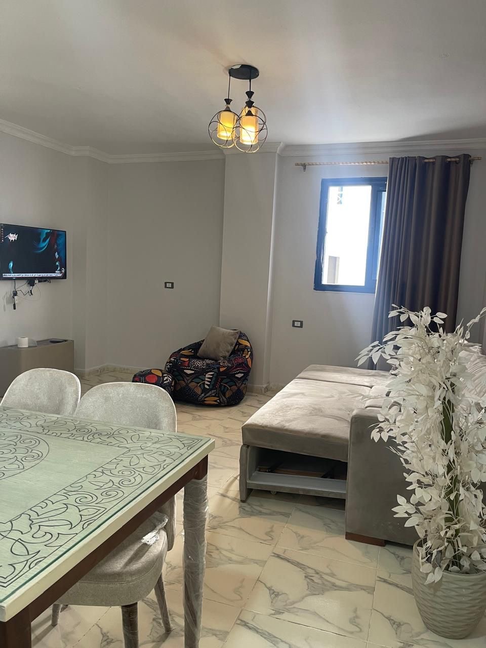 Take a break and unwind at this peaceful oasis. Studio with a Pool view. Studio offers: 1. Queen Bed. 2. Sofa Bed. 3. Smart Tv. 4. Kitchen. 5.dining table. 6.Bathroom. 7.Wifi. 8.Washing Machine. important remark: An official marriage certificate is required for Egyptians. ( No Orfi allowed )