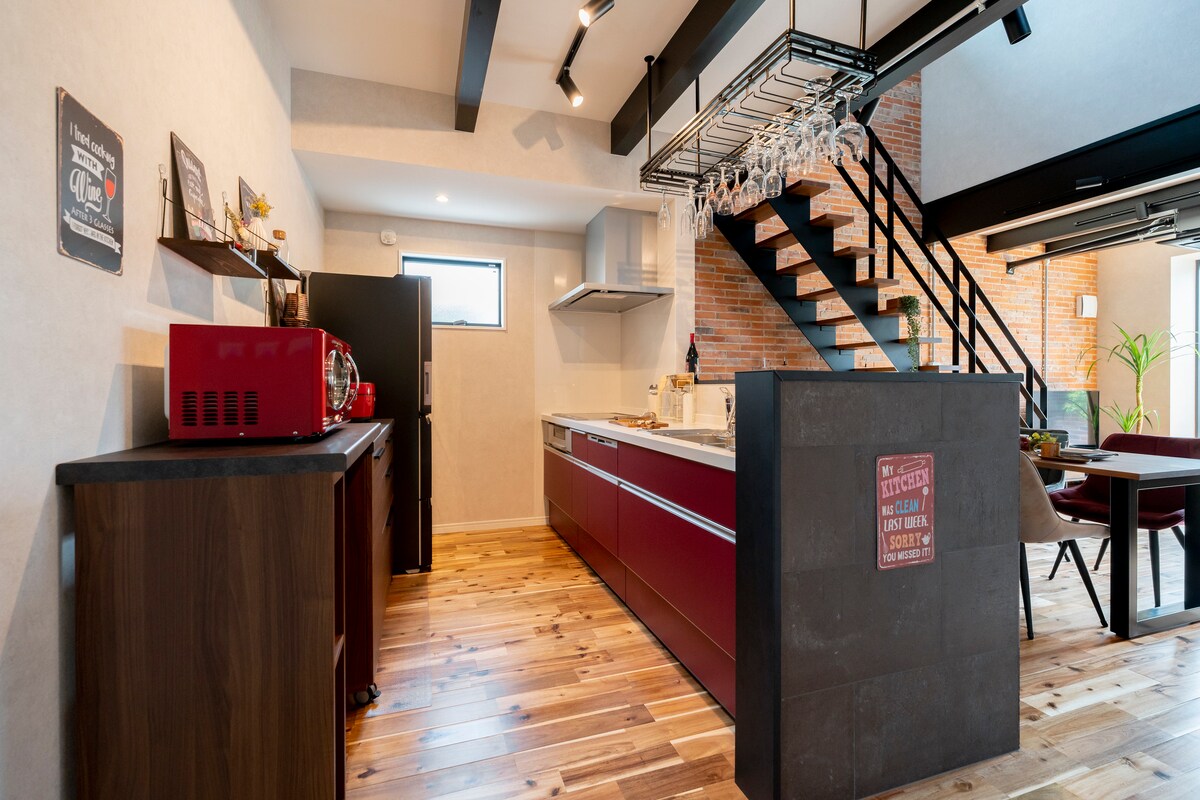 Una casa de 132㎡ renovada en un alojamiento moderno y lujoso. Cuenta con 3 dormitorios únicos, cocina-sala elegante, 2 baños y 1 sauna. Estacionamiento gratuito para 2 autos. A 15 min a pie de la estación de Toyama, 50 min en coche a la ruta alpina, 1 h a Kanazawa. Al llegar, elijan habitación y cocinen juntos en la cocina isla. Relájense en la sauna, compartan recuerdos con sake local y terminen el día respirando en el balcón. Sientan la belleza de estar aquí, ahora.