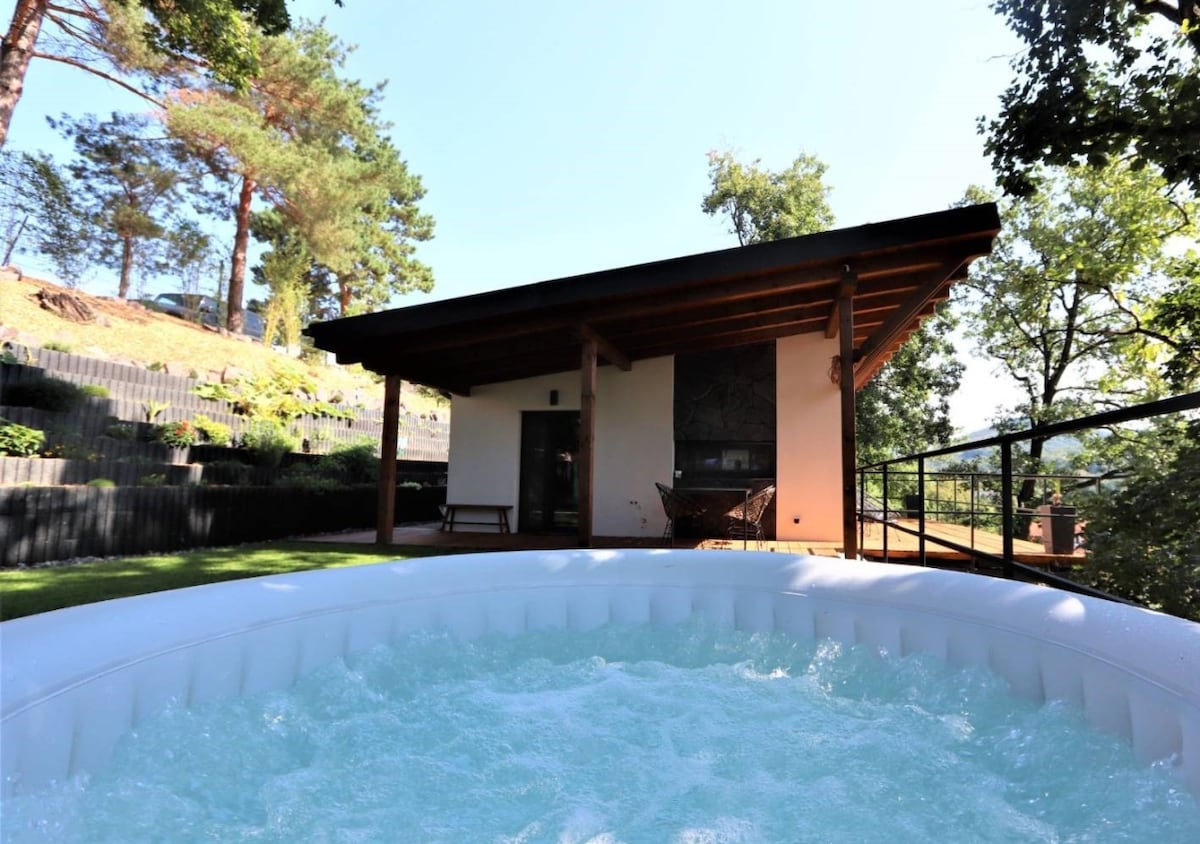 Escápate a nuestro encantador chalet en una colina tranquila en Trenčianske Teplice. Este acogedor espacio tiene un diseño de loft abierto que mejora su ambiente acogedor. Disfruta de total privacidad en el patio trasero, perfecto para relajarse o actividades al aire libre. Relájate en una sauna finlandesa, rodeada de naturaleza. Ya sea que estés explorando rutas de senderismo o relajándote, la cabaña es la escapada perfecta para parejas, familias o amigos. ¡Reserva tu estancia y conoce la belleza del bosque!