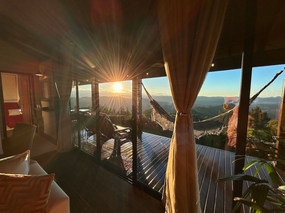 ¡Disfruta de momentos inolvidables en un chalet romántico con una vista de 270° de valles y montañas! A menos de 20 minutos del centro de Gramado, en medio de 10.000 m² de naturaleza, disfruta de una chimenea de piedra, un relajante jacuzzi, una cocina equipada y un balcón perfecto para un desayuno especial. Pasea por el rancho con ovejas dóciles y, desde la cama, observa cómo el amanecer ilumina el valle. ¡Un refugio de encanto y privacidad! ¡Reserva y disfruta!