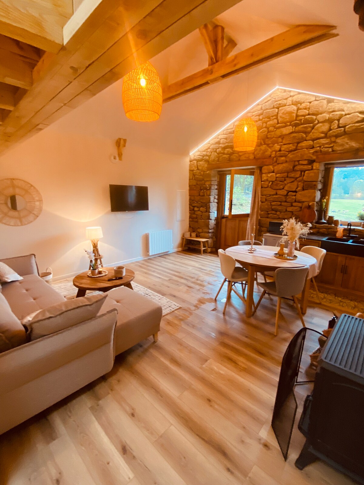 Segundo alojamiento de todas las casas rurales de Botplançon, la casa rural Rézé se distingue por una hermosa sala de estar cuya puerta de vidrio da a una terraza privada con vistas a la campiña de los alrededores, sin vecinos. Puede alojar hasta 3 personas utilizando el sofá cama. La cocina bar está bien equipada (horno, microondas, lavavajillas, lavadora, nevera, hervidor de agua, tostadora...).