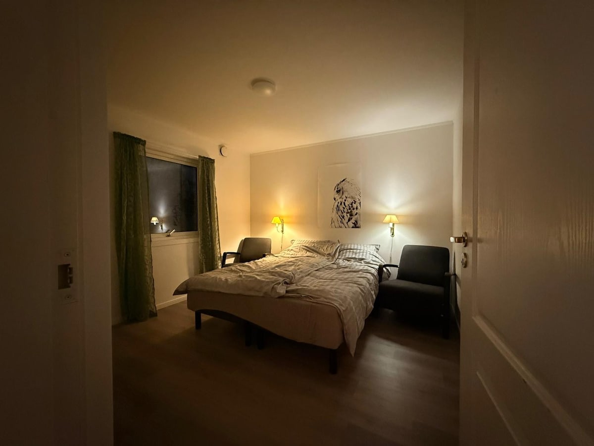 Apartamento principal en casa justo entre el centro de la ciudad y uit/UNN. Buenas instalaciones de estacionamiento con espacio para 2 coches. escalera de autos eléctricos. Parada de autobús a 4 minutos. Supermercado, cocina callejera, gimnasio y farmacia en las inmediaciones. Acceso al jardín más pequeño, así como al balcón en ambos lados del apartamento. A 10 minutos del aeropuerto en taxi. Comedor para 6 piezas. Tres dormitorios donde el más grande tiene una cama doble. En los otros dos dormitorios hay camas individuales. Si lo deseas, puedes poner una cama de viaje. Acceso a lavadora/secadora.
