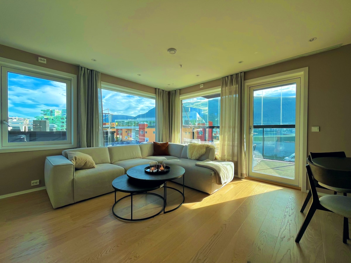 Adéntrate en el elegante y luminoso oasis de 1 dormitorio y 1 baño en el corazón de la pintoresca y vibrante ciudad de Tromsø. Promete un refugio relajante a solo un paso del centro de la ciudad, el paseo marítimo, emocionantes atracciones y lugares de interés. Explora la ciudad desde nuestra ubicación privilegiada antes de regresar al encantador apartamento, cuyas impresionantes vistas al mar y a la montaña te dejarán sin palabras. ✔ Dormitorio cómodo Sala de estar de diseño✔ abierto + sofá cama. Cocina ✔ completa ✔ Zona para trabajar ✔ Smart TV ✔ Wifi ✔ Aparcamiento ¡Ver más a continuación!
