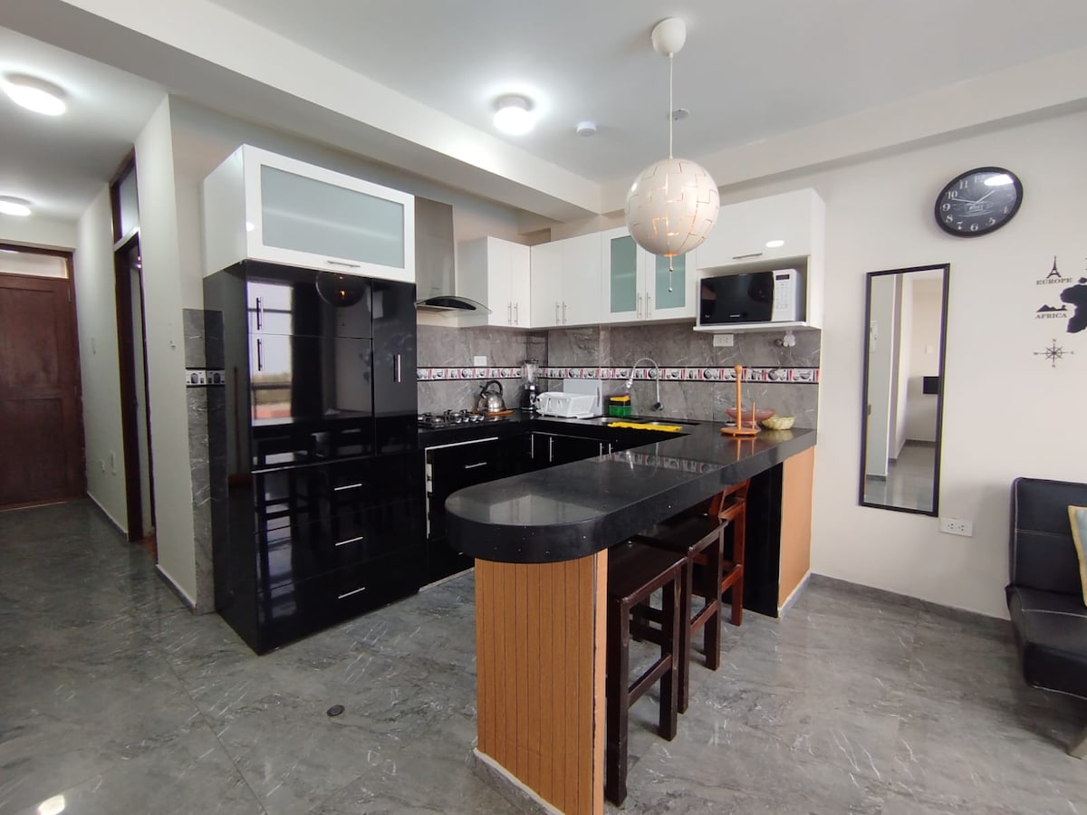 Departamento con moderna decoración, excelente iluminación, equipado por completo para hacer de su estancia la mejor de las experiencias. Ubicado en la zona más céntrica de la ciudad, le permitirá estar más cerca de los mejores restaurantes, entidades financieras y centros comerciales. Un lugar para compartir con amigos o familia, ideal para visitar en viaje de negocios o simplemente para visitar los atractivos turísticos de la ciudad.
