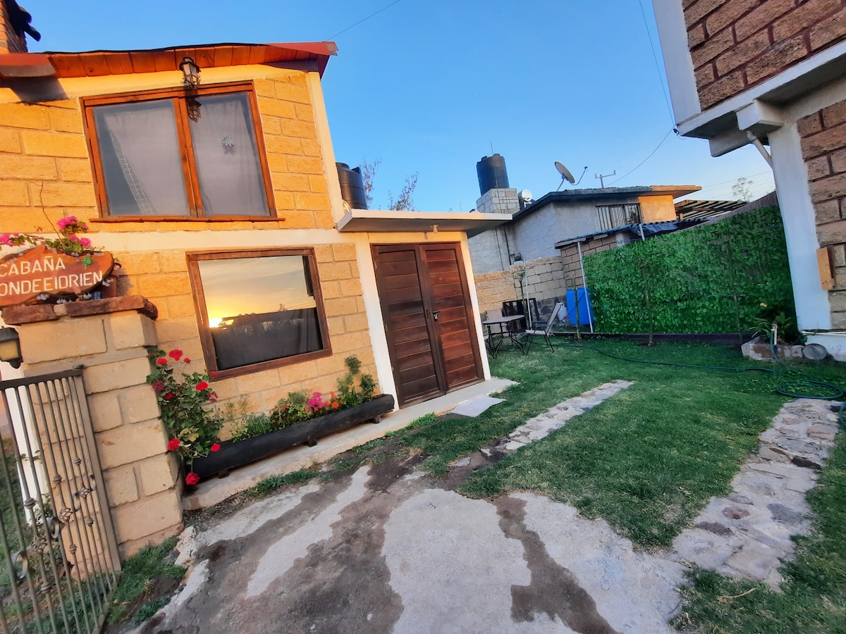 Hermosa cabaña con Fogata, Temazcal y spa