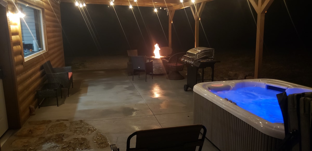 Modern Log Cabin with Indoor and outdoor hot tubs