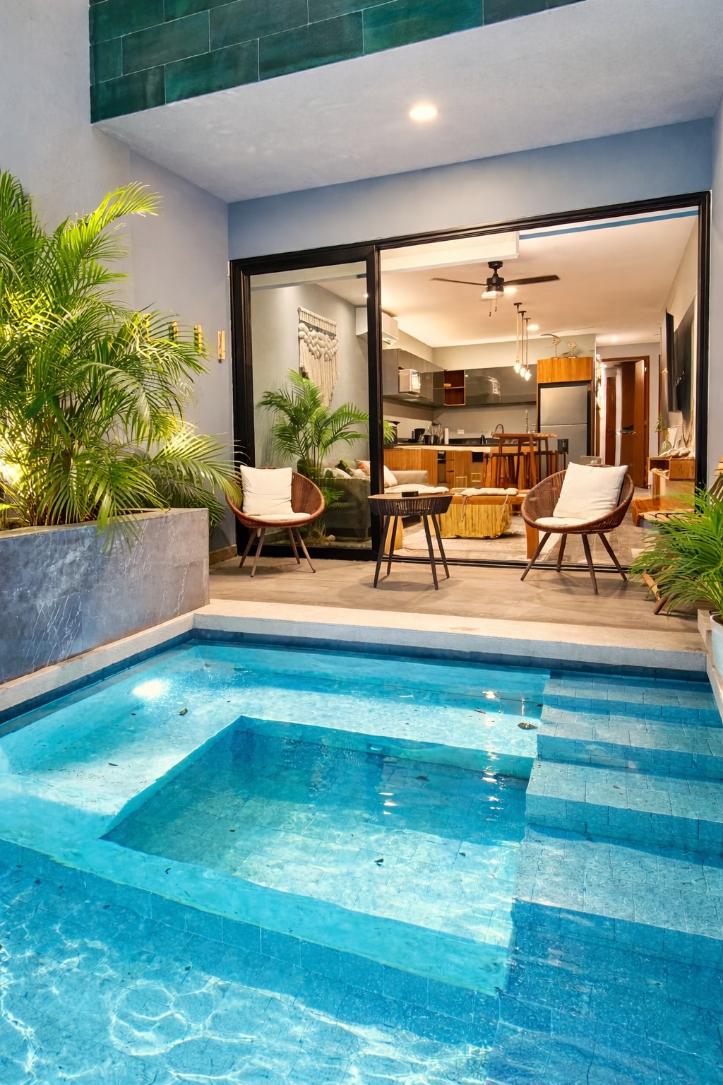 Descubre tu escapada elevada en la jungla en este elegante departamento de dos recámaras en Siwa Tulum, diseñado para viajeros que buscan espacio, privacidad y comodidad. A solo minutos de las playas de Tulum y de su vibrante zona urbana. Rodeada de exuberante vegetación, esta residencia cuidadosamente diseñada combina arquitectura moderna con la naturaleza, ofreciendo tu propia alberca profunda privada, terraza en la azotea y área de asador—perfectas para días de relajación y noches inolvidable