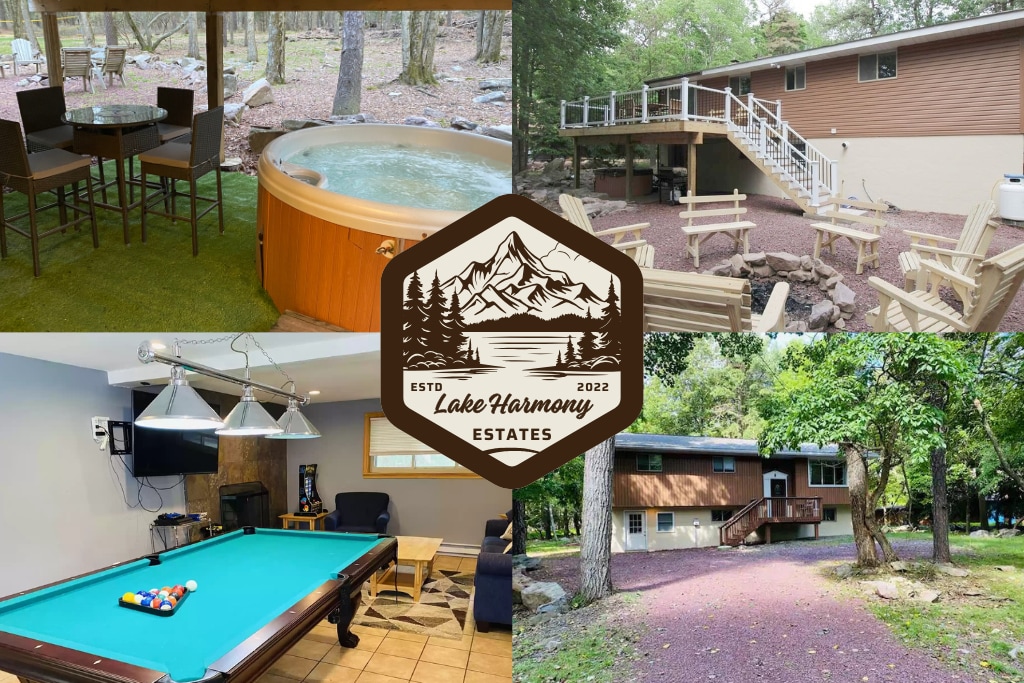 Disfruta de... Vistas al✩ lago y frente a la playa ✩ Al otro lado de: parque infantil, voleibol, baloncesto ✩ Tu propio pozo de fuego y leña. ✩ Ropa de cama y toallas. ✩ Parrilla y propano Cocina ✩ totalmente equipada. ✩ Gel de ducha, champú y acondicionador ✩ 2 cunas, silla alta, corralito, Baby Bjorn, bañera infantil Mesa de✩ billar, futbolín y otros juegos ✩ Cerca de tiendas, casino, Pocono Raceway Zona de✩ pesca a 2 minutos a pie ✩ Acomodate junto a dos chimeneas de gas: primer nivel y nivel inferior A ✩ minutos de Jack Frost y Big Boulder (tubos de nieve y esquí)