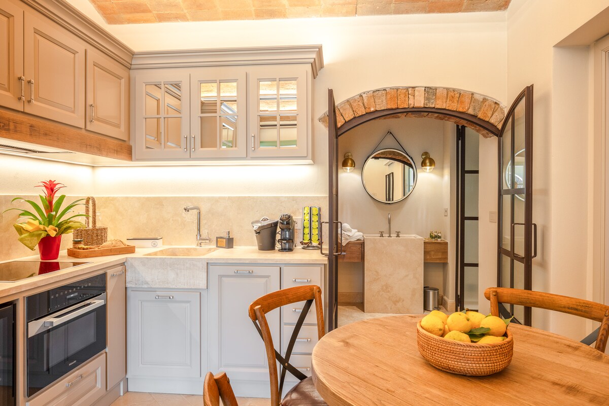 Trascorri un momento indimenticabile nella nostra esclusiva Bolgheri Wine Suite, sullo sfondo delle colline toscane e del Mar Mediterraneo. Nato come appartamento 100 anni fa, ristrutturato con amore e curato nei dettagli. Dalla domotica all'automazione intelligente, l'intrattenimento audiovisivo, il controllo dell'illuminazione e del riscaldamento. Immergiti nella vasca di design in soggiorno, dopo un sosta nel bagno turco tra i colori della cromoterapia e la colonna sonora in sottofondo.