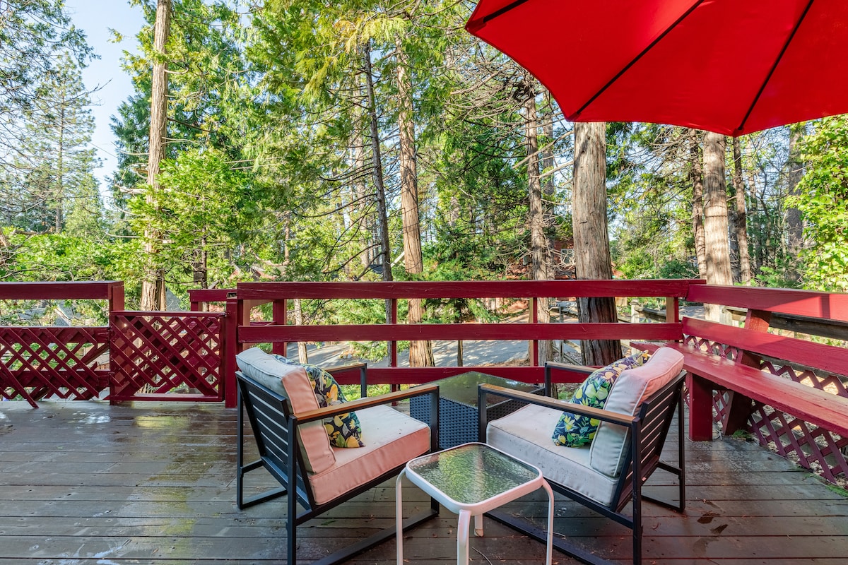 ¡Ven a disfrutar de una de las cabañas más antiguas de Twain Harte: aislada y actualizada con calefacción/aire acondicionado central, cocina modernizada y lavadora/secadora! Camina hasta las tiendas del centro de la ciudad, restaurantes, golf, lago, parques, piscina y mucho más. La planta principal tiene una suite king y un segundo dormitorio queen decorado con arte folclórico. Arriba hay un espacio para televisión/videojuegos y una zona de juegos separada, además de espacio para dormir 6 en tu loft luminoso, que incluye 2 zonas de dormitorio separadas con una cama tamaño queen, 2 camas individuales y un sofá cama/cama nido.