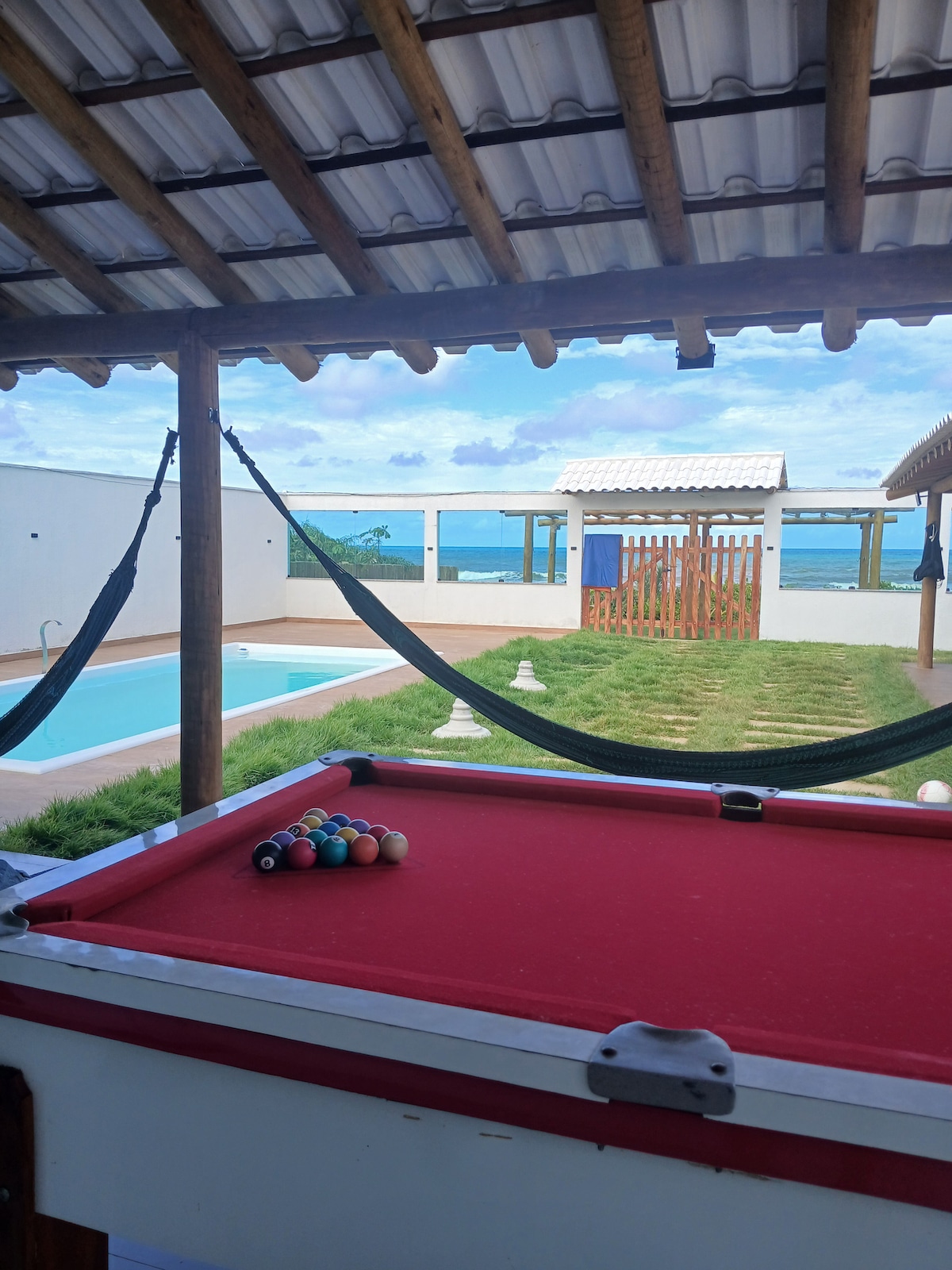 Relájese con toda la familia en este alojamiento tranquilo. ALQUILER DE CASA POR TEMPORADA / UBICADA EN LA ISLA DEL DESEO / ZONA SUR DE ILHÉUS! Casa con 4 dormitorios, 3 baños, 1 ducha exterior, aire acondicionado en todas las habitaciones, Wi-Fi, área de ocio con billar, piscina con amplia terraza, fregadero, barra y barbacoa, sala de estar, balcón, cocina y amplia zona de servicio. ¡Casa a pie de playa, junto a la posada Isla del Deseo! TIENE CAPACIDAD PARA 15 PERSONAS EN CAMAS.