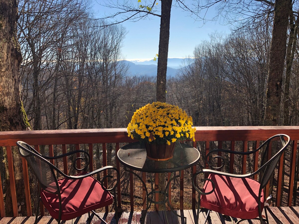 Escapada serena escondida en el bosque a 35 minutos de Asheville. Retiro cómodo artísticamente renovado a solo una milla de la estación de esquí Wolf Ridge, vida silvestre (a los ciervos les encantan nuestros bosques), observación de aves y rutas de senderismo prístinas. Jane 's Place incluye una cocina totalmente equipada, muchos toques personalizados, una acogedora chimenea y la oportunidad de relajarse. Perfecto durante todo el año para familias y grupos pequeños, hay muchas oportunidades para aventuras al aire libre cerca, o simplemente relajarse en la terraza y cocinar con la familia.